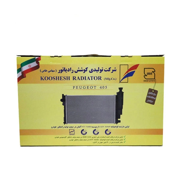 رادیاتور آب کوشش ( تک لول ) مناسب برای پژو 405 کلاسیک و سمند میباشد و اتصالات رادیاتور به موتور با شیلنگ و بست پیچی انجام میپذیرد .جهت استفاده بهینه با طول عمر بیشتر این رادیاتور در تمامی فصول از محلول ترکیبی آب، ضد جوش و ضدیخ استاندارد استفاده نمایید.این رادیاتور از بهترین و مرغوب ترین مواد اولیه تولید شده است.شرکت تولیدی کوشش رادیاتور دارای استاندارد ملی اجباری و تاییدیه صنعت سبز ملی در صنعت تولید رادیاتور خودرو میباشد.