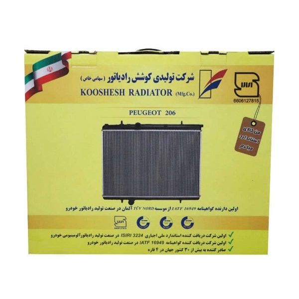 رادیاتور آب کوشش کد T2 مناسب برای پژو 206 تیپ 2